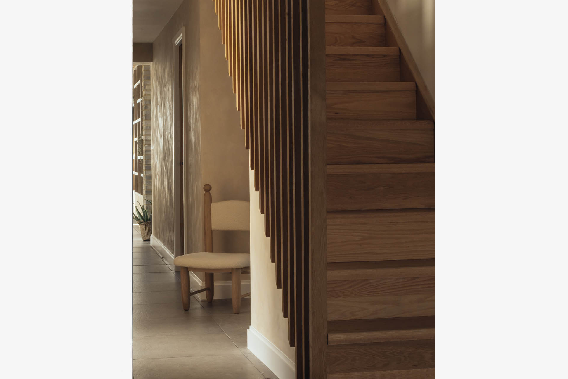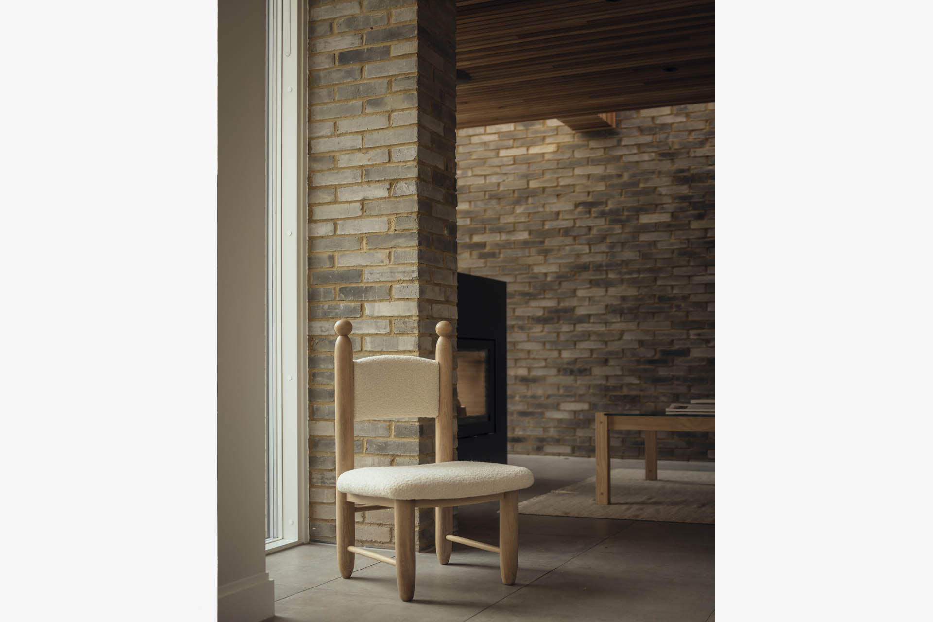 The Red Rock Club Chair offers a compact footprint and low seating, giving it a naïve, playful feel. Its stiles feature tactile carved spheres, inviting people to hold on while chatting with someone seated. The Red Rock Club pieces feature solidly proportioned legs which taper at the feet and feel pleasingly substantial.